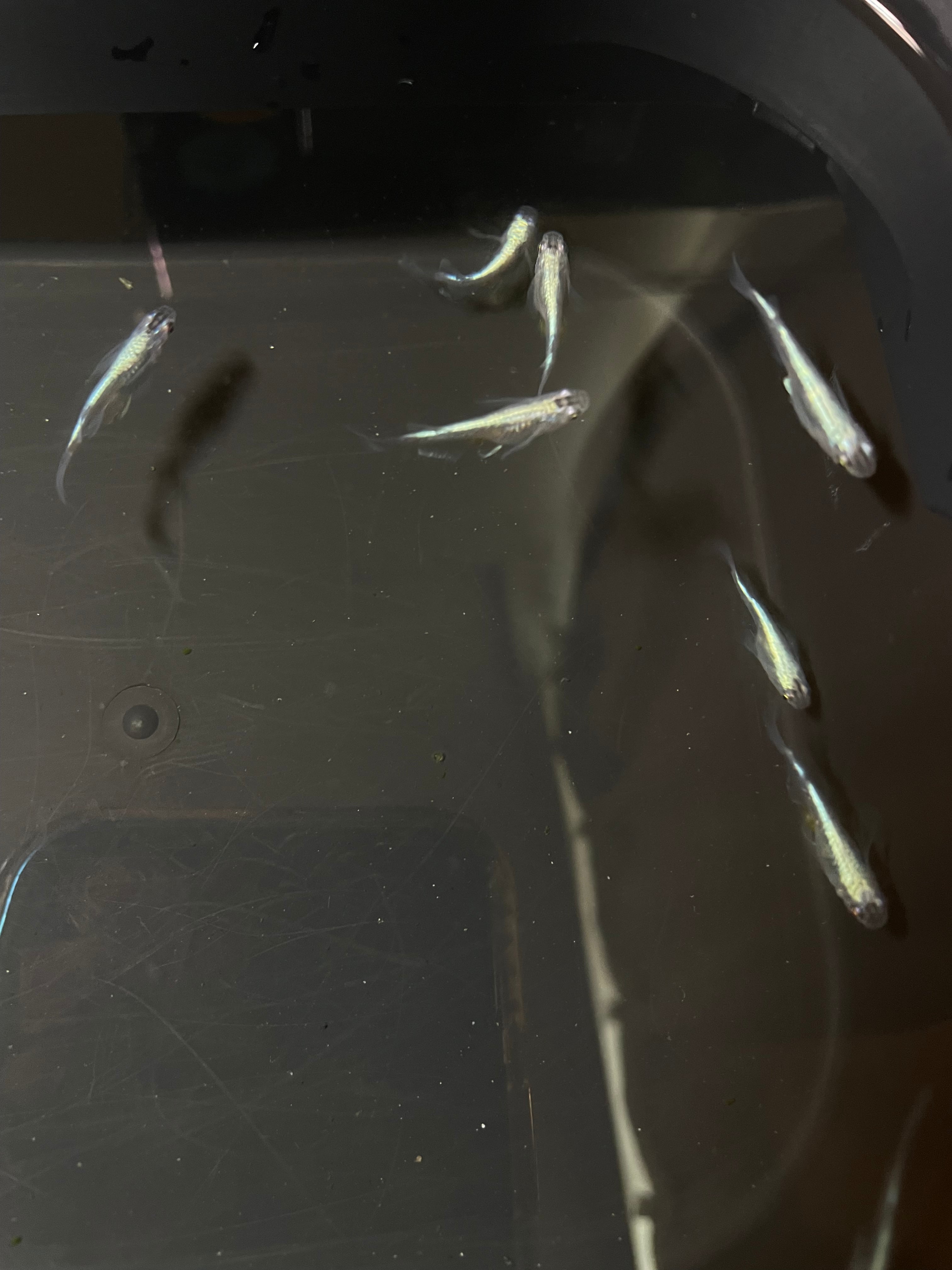 メダカ王国の個体の全て、「尾ヒレ・背ビレは先端が顕著に発光しており、上見は頭から口先にかけて黒く、全体的に深みのある青さで独特な光り方をしています」