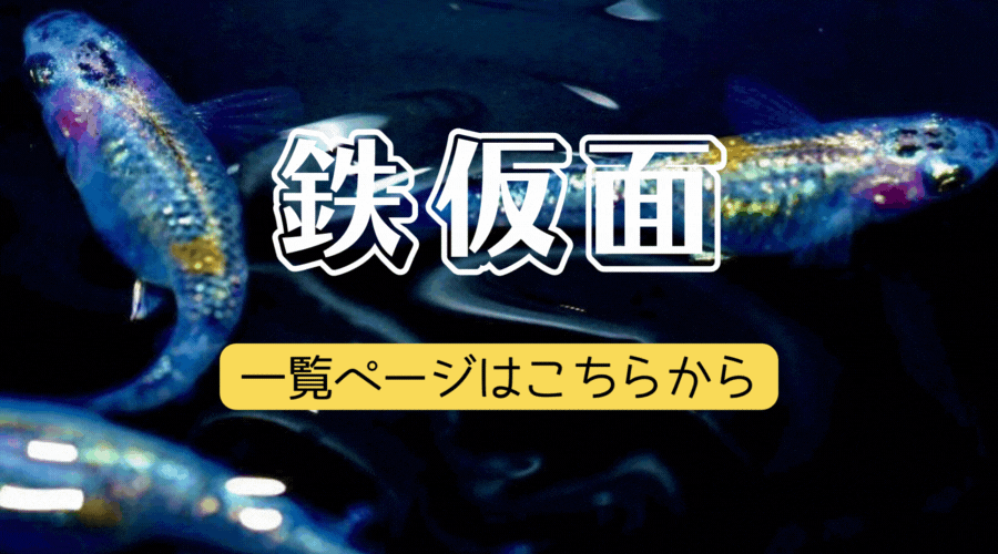 『鉄仮面』は幹之メダカのグレードの中で最上位とされる品種です。 頭の先端から尾びれまでムラなく強く光るため、『フルボディ』と呼ばれることもあります。 背中の光沢は自然光でも十分きれいですが、室内飼育の場合は照明を使うことで輝きが増します。